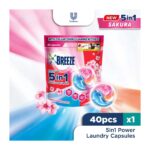 Breeze 3-in-1 Power Laundry Capsules are formulated with naturally-derived enzymes that eliminate 99 stubborn stains and even 7-day dried stains. With newly added laundry sanitiser, Breeze 3-in-1 Power Laundry Capsules are now 99% anti-bacterial and prevents bacterial growth for 72 hours. Breeze Sakura Blossom 3-in-1 Power Laundry Capsules deliver: Softer clothes with long-lasting Sakura fresh fragrance. Colour protection on clothes. 99% anti-dust mites. No optical brighteners. Suitable for indoor drying. 1 capsule for 5-7kg load, up to 15 pieces of clothing.