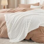 Bedsure Striped Flannel Fleece Blanket – Ultra-Soft. Lightweight. White Blanket. Classic Stripe Pattern. Multi-Color. Ideal for Bed. Couch. Travel. Camping. All Seasons. Home Bedroom Decor.Halloween Gifts